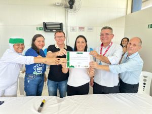 A presidente Jucielly Oliveira na entrega de mais um certificado SISBI para abatedouro de aves
