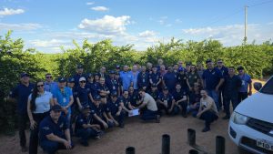 A equipe da Aged participou de duas visitas técnicas, a primeira na fazenda Península para uma demonstração sobre a fiscalização e higienização de máquinas agrícolas; e a segunda sobre o sistema de mitigação de risco para a praga quarentenária (Cancro Cítrico) implantado no Piauí.